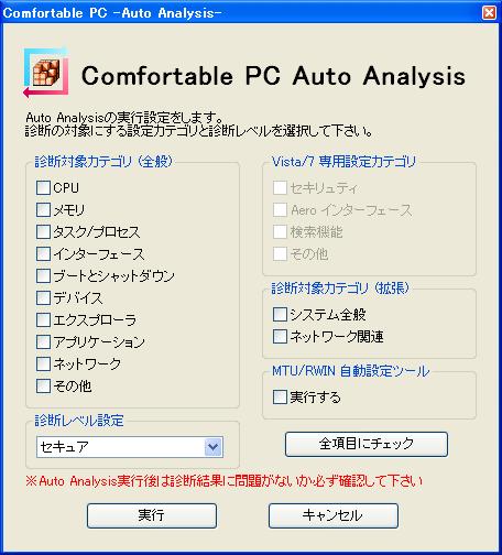 PCを自動的に診断して最適な項目を選んでくれるという機能です