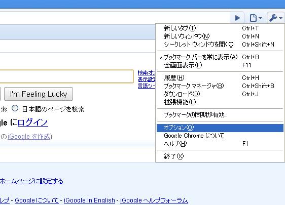 先ほどのスパナのマーク(ツール)から「オプション」