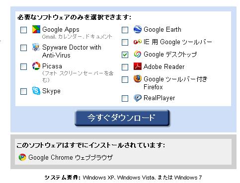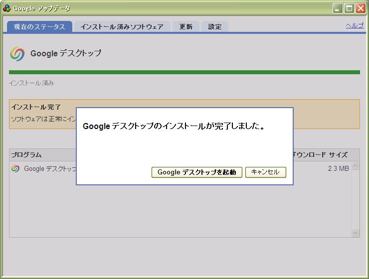 「Googleデスクトップ」だけにチェックを入れて
