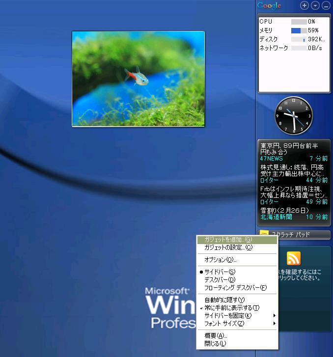 VistaやWindows7では当たり前のサイドバー