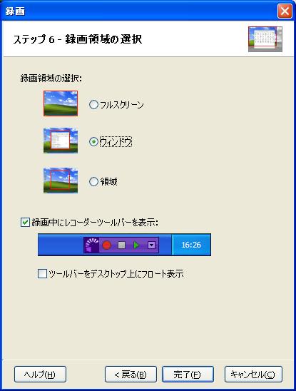 キャプチャーの際に録画する範囲を