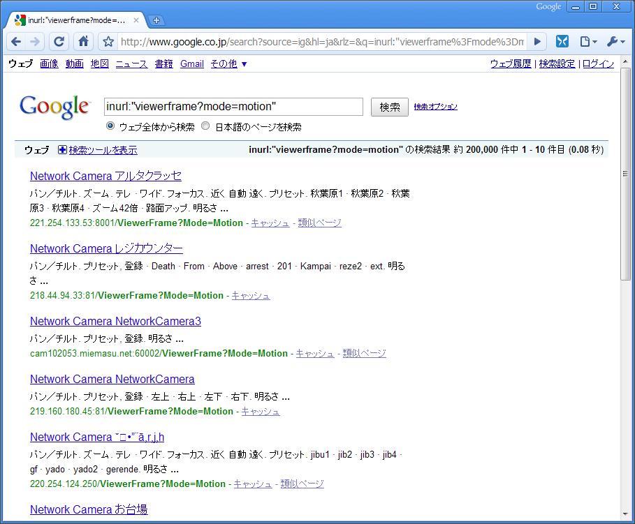 さて、タイトルにもあるようにライブカメラを検索する場合ですが